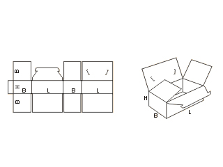В нижней части коробки расположены четыре одинаковых по длине клапана, снаружи перекрывающих друг друга. Верхняя часть коробки также оснащена четырьмя клапанами. Для придания дополнительной прочности в одном из верхних клапанов сделаны специальные прорези для замков, вырезанных на симметричной части. Это гарантирует наиболее плотное закрывание коробки и повышает защиту содержащихся в ней товаров.