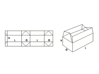 Конструктивно верхняя и нижняя части складных коробок FEFCO 0226 выглядят идентично. В отличие от других моделей все четыре клапана (сверху и снизу) не разделены друг от друга. Для того чтобы собрать короб, достаточно согнуть клапаны по подготовленным беговкам.