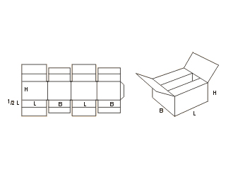 В этом разделе нашего магазина вы можете ознакомиться со складными коробками стандарта FEFCO 0229, выполненные по упрощённой конструкции. Наружные клапаны стыкуются между собой, в то время как внутренние образуют внутри полости разделители, используемые, например, для безопасного хранения и перевозки бьющейся продукции.