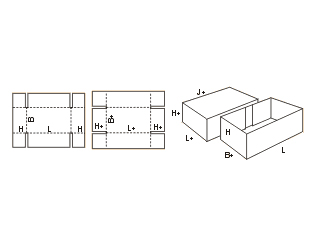 На сайте вы можете найти телескопические коробки, которые состоят из крышки и дна (или корпуса), складываемых друг с другом – причём крышка за счёт больших габаритов перекрывает дно по высоте. Углы такой коробки, как и в случае с FEFCO 0300, складываются и склеиваются по длинной стороне.