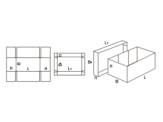 Если лотки на предыдущих моделях выпускаются приблизительно равной высоты (с небольшой разницей), то коробы FEFCO 0306 производятся иным образом – высота крышки в 2-4 раза меньше высоты корпуса. Такая конструкция чем-то напоминает коробки для хранения и реализации обуви.