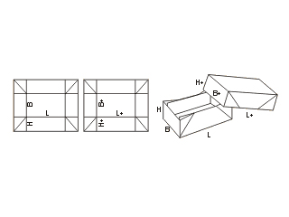 Производители таких коробок заготавливают лотки определённых размеров и выполняют сгибы. Заказчику остаётся просто согнуть коробку по этим сгибать и склеить углы либо воспользоваться специальными скобами. Обеспечивается полное перекрывание крышкой по высоте корпуса.
