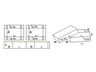 Два других элемента являются лотками: один используется в качестве дна, а другой – крышки. Главное отличие FEFCO 0311 от модели 0310 связано с высотой этих двух лотков. Если в 0310 высота минимальная, то в FEFCO 0311 она составляет приблизительно половину от высоты вертикальной обечайки. Получается, что при полном складывании крышка и дно соприкасаются друг с другом, полностью скрывая обечайку.