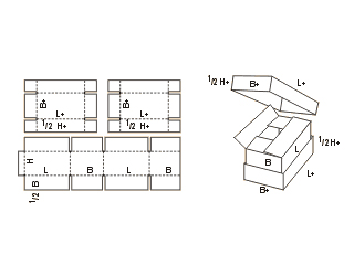 Телескопический гофроящик состоит из трёх основных элементов, как в случае с моделями FEFCO 0310 и 0311.