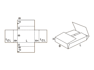 Если в модели штампованных ящиков FEFCO 0401 боковые стенки, расположенные на узкой части прямоугольника, имели произвольную высоту без перекрывающихся клапанов, то в случае с FEFCO 0402 клапаны расположены на всех четырёх сторонах. Клапаны на узкой части по высоте равны половине от длины ящика, в то время как клапаны на более широкой части по высоте равны половине от ширины упаковочной тары.