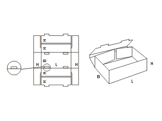 Как и в случае с моделью ящиков FEFCO 0422 эта коробка в собранном виде представляет собой лоток. Это ящик без крышки, который может использоваться для упрочнения конструкции другой упаковочной тары, а также – в качестве отдельной коробки.