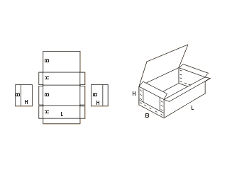 Картонные коробки модели FEFCO 0601 существенно отличаются от всех предыдущих серий. В развёрнутом виде они состоят их трёх отдельных частей – две торцевые стенки и одна обечайка.