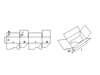 Цельный лист картона разделен поперечными изгибами на пять частей. Каждая из четырех частей объединяет в себе боковую стенку, клапан крышки и клапан дна коробки, в то время как пятая часть необходима для последующего склеивания или скрепления при помощи металлических скоб.