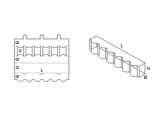 В разобранном виде коробка FEFCO 0752 состоит из цельного листа гофрированного картона, отчасти напоминающего прямоугольник. Но если две боковые стороны ровные, то в нижней части есть несколько закруглений в форме дуги, а в верхней – три клапана, необходимых для придания прочности во время сборки. В середине цельного листа заранее заготавливаются прорези, которые в собранном варианте формируют лицевую часть (то место, через которое люди оценивают хранящуюся внутри продукцию).